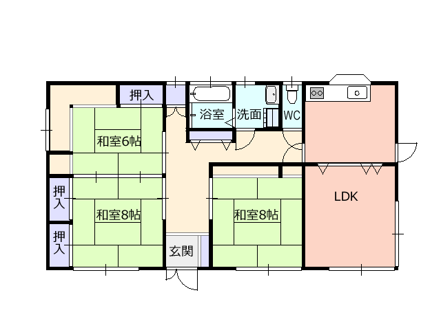 3LDK (和8x2、和6、LDK) |
