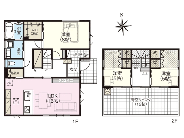 3LDK+SS (洋8、洋5、洋5、LDK16、土間収納、WIC) |